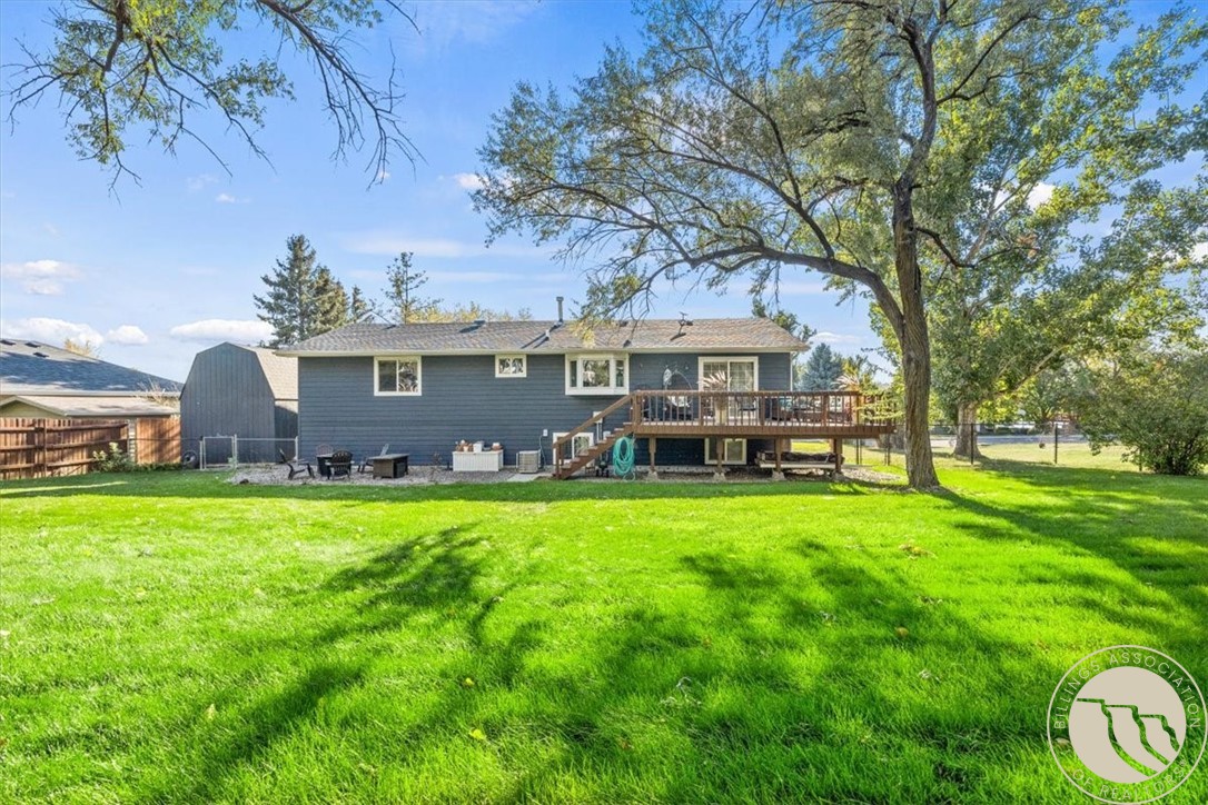 Stunningly updated 4-bedroom, 3-bath home near Lake Hills Golf Course and Lake Elmo. The main level features a bright, open living area with a cozy fireplace and a remodeled kitchen (2022) showcasing real wood cabinets, Corian countertops, and Samsung black stainless appliances that open to a spacious deck--perfect for entertaining. You'll also find two nicely sized bedrooms and a primary suite with a private bath. The lower level offers a family room, full bath, bedroom, laundry area, and ample storage. Major updates include the roof, Diamond Kote siding, Pella windows/doors (2020), new flooring (2020), and furnace (2018). Outdoors, enjoy underground sprinklers, mature landscaping, and a 12x16 two-story shed. The attached 2-car garage provides secure, flexible storage. Move-in ready comfort in a prime Billings location!