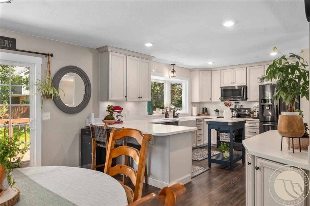 Huge Price Improvement! Now offered at $449,000 - Stunningly updated 4-bedroom, 3-bath home near Lake Hills Golf Course and Lake Elmo. The main level features a bright, open living area with a cozy fireplace and a remodeled kitchen (2022) showcasing real wood cabinets, Corian countertops, and Samsung black stainless appliances that open to a spacious deck--perfect for entertaining. You'll also find two nicely sized bedrooms and a primary suite with a private bath. The lower level offers a family room, full bath, bedroom, laundry area, and ample storage. Major updates include the roof, Diamond Kote siding, Pella windows/doors (2020), new flooring (2020), and furnace (2018). Outdoors, enjoy underground sprinklers, mature landscaping, and a 12x16 two-story shed. The attached 2-car garage provides secure, flexible storage. Move-in ready comfort in a prime Billings location!