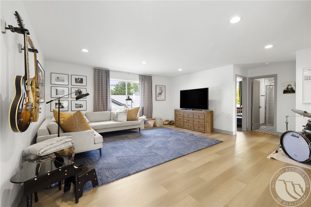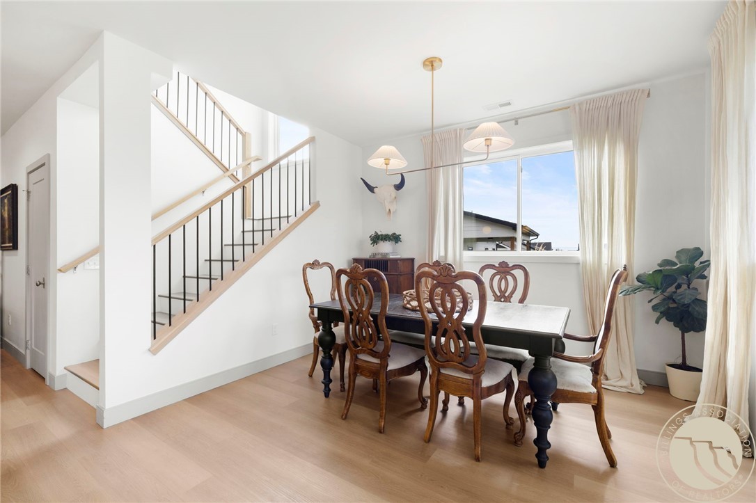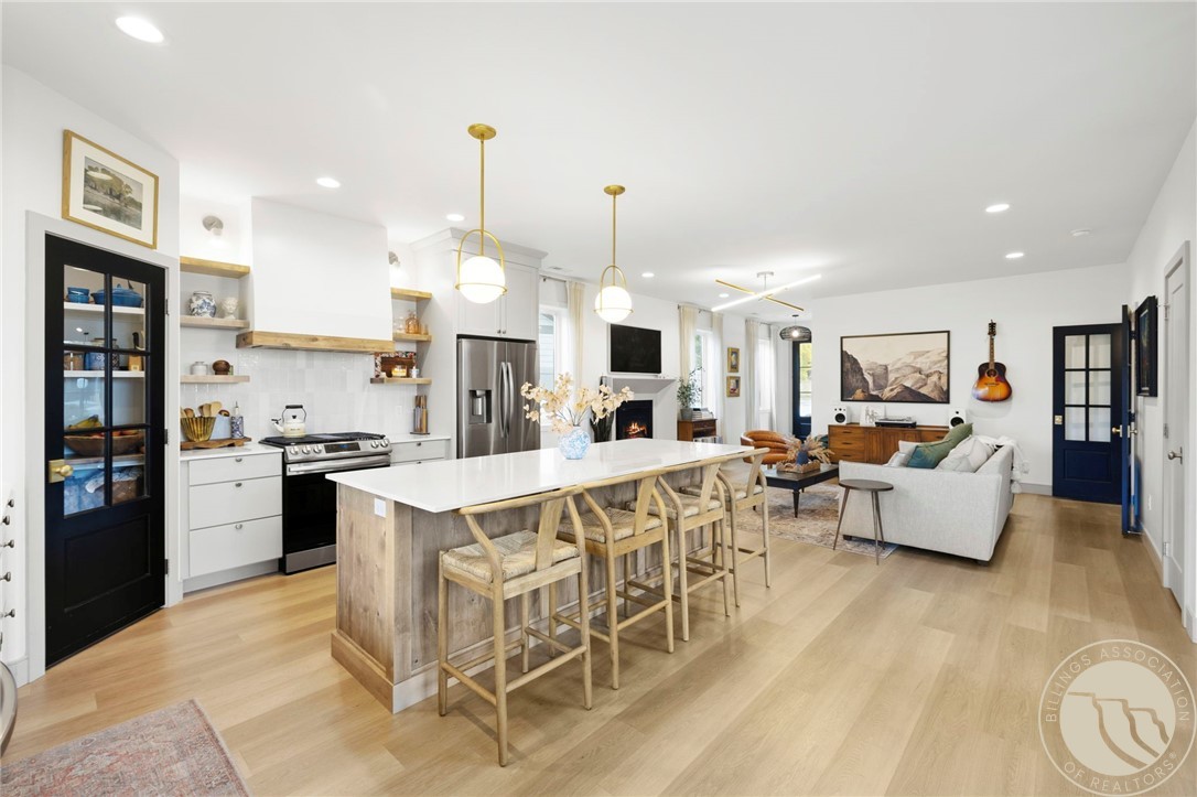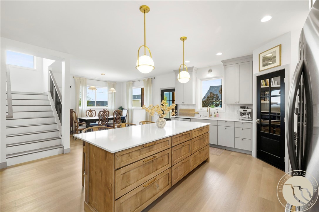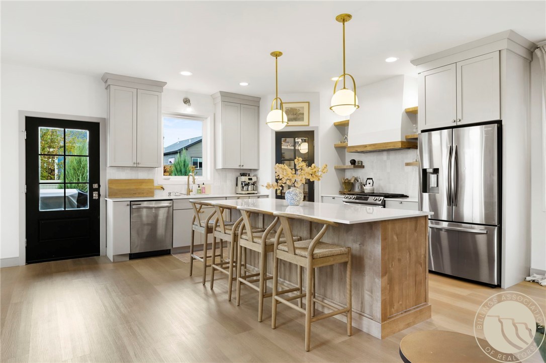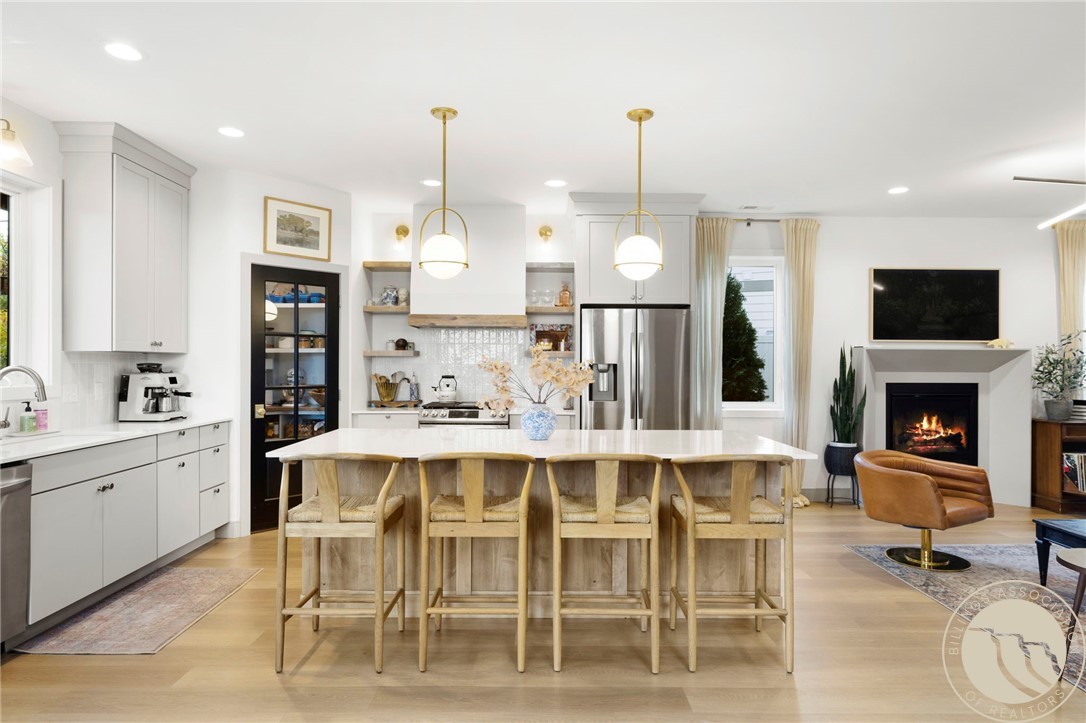 Beautifully upgraded West End home on a quiet cul-de-sac, rich with thoughtful features throughout. Bright, open main level with wide-plank flooring, custom lighting, gas fireplace, and a stunning kitchen featuring quartz counters, large island, soft-close cabinetry, tile backsplash, and walk-in pantry with glass door. Upstairs offers all three bedrooms, a second living area, and a refined primary suite with a private balcony showcasing incredible views of the Beartooth Mountains. Suite includes a walk-in closet and a spa-style bath with tiled shower and double vanities. Spacious laundry room with extensive cabinetry, wallpaper accent wall, and folding counter. Outside features a fully fenced, landscaped backyard with a large patio, covered area, and mature plantings for privacy. A gorgeous, move-in-ready home that's everything you want wrapped up for the holidays!