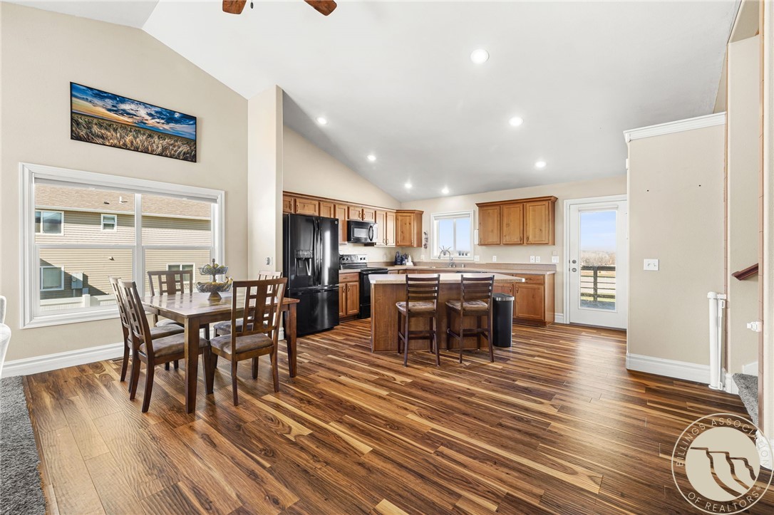 Welcome to this beautifully updated home in an established Lockwood neighborhood, offering space, functionality, and over a half-acre lot. The main level features vaulted ceilings and an open layout connecting the living, dining, and kitchen areas--perfect for everyday living and entertaining. The kitchen offers a large island, ample cabinetry, and great flow to the dining space and deck. Enjoy sunsets overlooking the fully fenced backyard, complete with a fire pit and storage shed. Upstairs includes three bedrooms, including a primary suite with private bath. The lower level features a family room, bedroom, and bath, while the finished basement adds a bedroom, office (or 6th bedroom), and storage. With RV parking and room to build a shop, this property offers flexibility and room to grow.